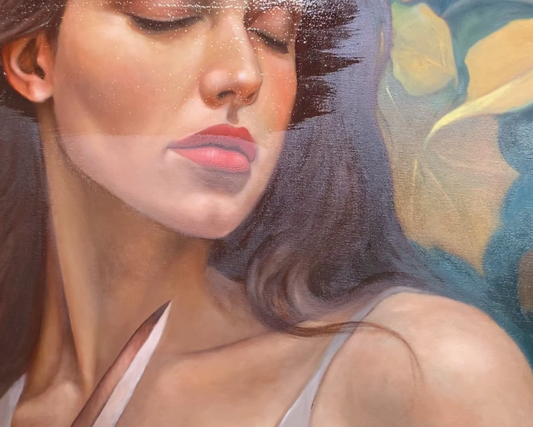 This selection of images may seem a little strange, but they are what I call "just varnished". The last part of the process is the application of varnish, a wet layer that is clear and enhances the very subtle colors of a painting while bringing out the darker tones. In my mind, this is the stage at which the painting is at it's most beautiful, where hidden treasures are revealed.