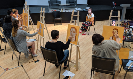 WORKSHOPSAre you interested in learning how to paint with oil? If so, I may be able to assist you. As an experienced painter and teacher, I have conducted workshops and classes for both teenagers and adults. Whether it's in my studio or yours, I can guide you through the entire process of creating a formal portrait, from imprimatura to varnishing. Additionally, I offer group workshops that can be held at your location. For a more personalized experience, I also provide one-on-one lessons in my studio or online through a mentorship program tailored to your specific needs. If you would like more information, please don't hesitate to contact me at Click for Email